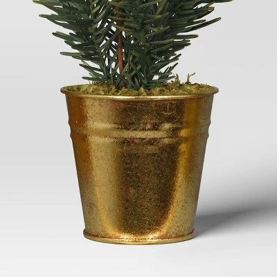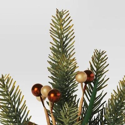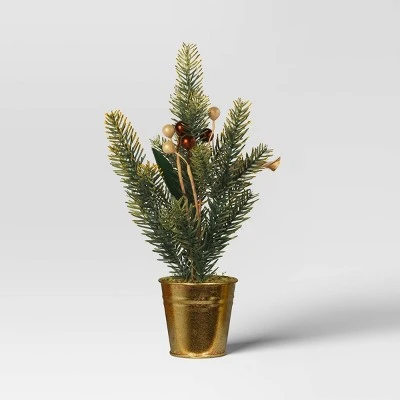 Spruce up your Christmas display with this 3-Piece Potted Greenery with Berries Christmas Artificial Plant from Wondershop™. The faux potted plant set features an arrangement of pine trees with berries set inside a golden pot to add a touch of greenery and festive warmth to your decor. Place it on your living room mantel or on an end table to create a stunning accent with no upkeep required.