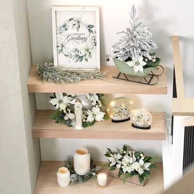This beautiful white poinsettia pick is a perfect addition to your Christmas decor. Insert this Sullivans exclusive pick into a planter, add to an arrangement or shape it into your own design for a festive winter look that is elegant and sophisticated.