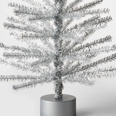 Add beautiful shine to your home decor with this Unlit Shiny Silver Artificial Mini Christmas Tree from Wondershop™. This artificial Christmas tree adds seasonal charm to your table decor. It’s covered with metallic silver tinsel branches for a shiny festive look. This decorative 24-inch tree comes with a matching round base for easy placement. Add whimsical ornaments and colored lights for a fun look.