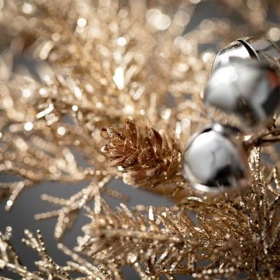 - Sprinkle the magic of the season with our enchanting 29″H Gold Cedar Bell Spray Christmas spray, perfect for adding a festive touch to any space.