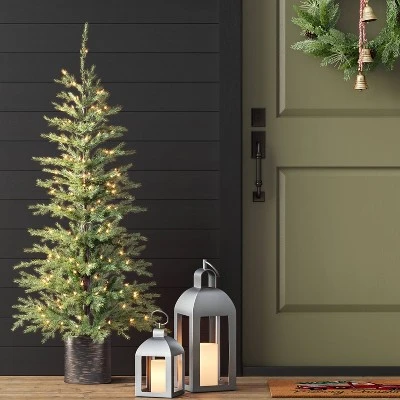Add the perfect centerpiece to your holiday display with this Pre-Lit Potted Indexed Balsam Fir Artificial Christmas Tree from Wondershop™. This artificial Christmas tree features green branches for a beautiful traditional look, and it comes equipped with 140 clear lightbulbs that cast a sparkling festive glow. This decorative tree designed with pull-down branches is easy to set up and store, and it includes a round metal potted base for instant display on the floor.