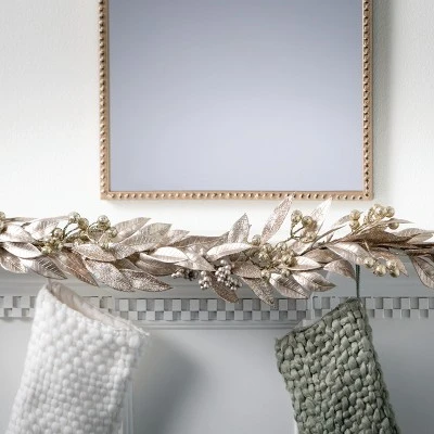 - Product Name: 6’L Sullivans Gold Leaf & Berry Garland, Gold Christmas Garland