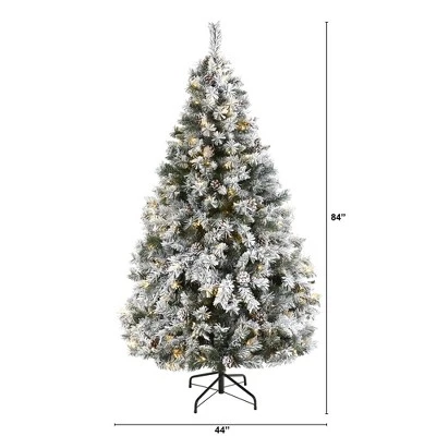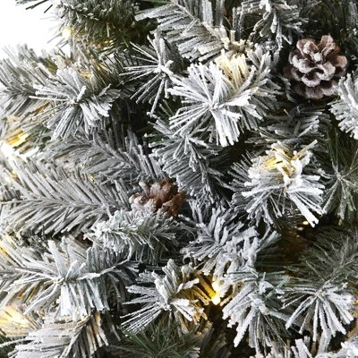 Evoke a winter wonderland this holiday with this 6ft. Flocked White River Mountain Pine Artificial Christmas Tree with Pinecones and 250 Clear LED Lights by Nearly Natural. Entirely maintenance-free, this winter-inspired Christmas tree boasts soft looking foliage with 628 easy-to-bend branches for showcasing decorative ornaments, handsomely accented throughout with faux pinecones that look incredibly lifelike. Lightly frosted with faux snow to help evoke the ultimate White Christmas setting, it arrives pre-strung with 250 clear LED lights to help eliminate tangles and make decorating stress-free. Carefully stabilized on an accompanying stand and reaching 6’ high when in full display, this lightly frosted artificial Christmas tree will undoubtedly transform any home or office into a joyous holiday environment for years to come.