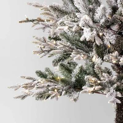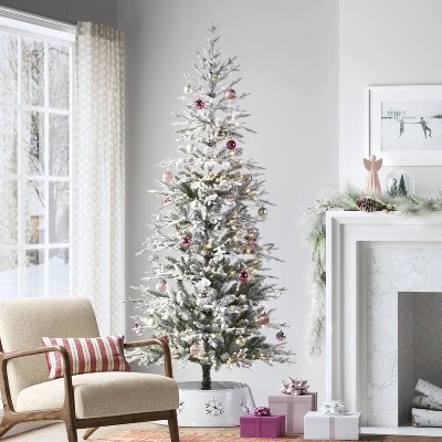 Light up the winter festivities with this Pre-lit Glitter Flocked Indexed Balsam Fir Artificial Christmas Tree from Wondershop™. This artificial balsam fir Christmas tree is covered with glittery flocked green branches, and it comes illuminated with 400 white LED light bulbs to cast a bright, festive glow. The decorative tree designed with hinged branches is easy to set up and store, and it includes a metal base for instant display on the ground. Simply pair with your favorite ornaments, garlands and other embellishments to create a whimsical holiday display.