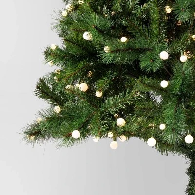 Complete your Christmas display with this Pre-lit LED Frosted Globe Douglas Fir Artificial Christmas Tree from Wondershop™. This artificial Christmas tree is covered with natural-looking green branches for a traditional look, and it comes illuminated with warm white frosted globe LED light bulbs to cast a cozy, festive glow. The decorative tree designed with hinged branches is easy to set up and store, and it includes a metal base for instant display on the ground. Simply pair with your favorite ornaments, garlands and other embellishments to create a whimsical holiday display.