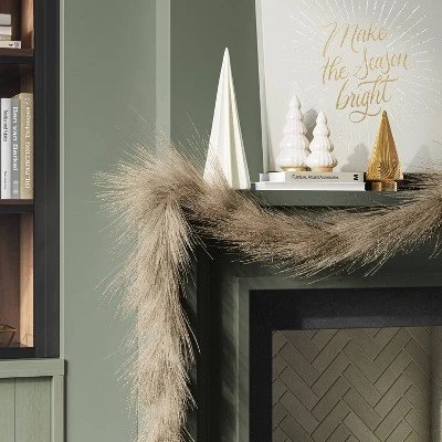 The Artificial Christmas Garland XL Shimmer Long Needle Pine from Threshold™ makes an impressive statement in your festive home. This beautiful Christmas garland features shimmery, artificial long pine needles for an extra-festive look. Designed for indoor use, this decorative piece is perfect for wall display, and you can also place it on the dining table to enhance your holiday tablescape.