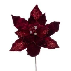 Vickerman 17″ Pearl Glitter Poinsettia Aritificial Christmas Stem