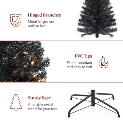 - HIGH-QUALITY DESIGN: Crafted with durable metal hinges and flame-retardant PVC branches that stand tall with the help of a sturdy metal base, so you can enjoy your tree for the holiday season to come!