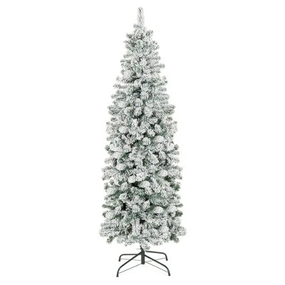 - REALISTIC AND FESTIVE: Pencil Christmas tree with snow-flocked branches that add a winter feel to any setting; Number of Tips (4.5ft/6ft/7.5ft/9ft/12ft): 300/421/641/1,005/1,843