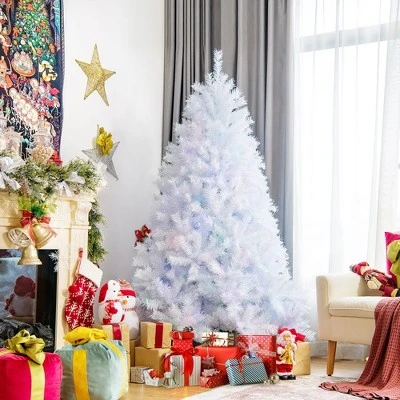 Costway 6ft White Iridescent Tinsel Artificial Christmas Tree w/ 792 Branch Tips