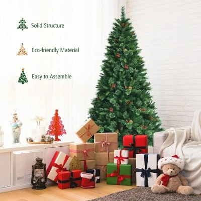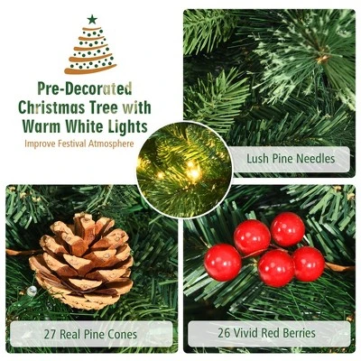 - Lush and Realistic Appearance: With 1198 branch tips, this artificial Christmas tree is leafy and will give you a realistic look. The various shapes of leaves offer a natural style and adding festival atmosphere to the tree. There are lots of pine cones and red berries decorated among the branches, making it more vivid and attractive.