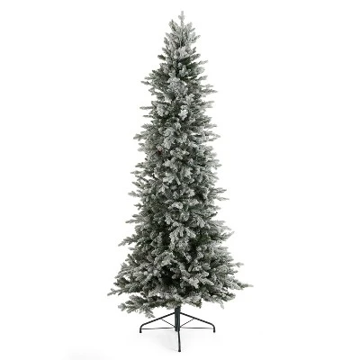 - HOLIDAY ESSENTIAL: Bring holiday cheer into your home with this Home Heritage 7.5-Foot Overlight Flocked Prelit Artificial Christmas Tree with dimmable clear micro-dot LED lights and 2,421 foliage tips