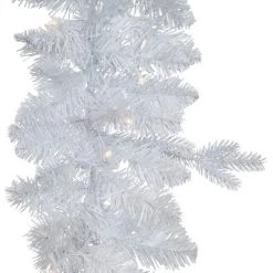 This 9 Foot Pre-Lit Warm White LED Jackson White Pine Garland is a unique, festive way to add to your holiday décor. Perfect for a little extra holiday cheer, this garland has snowy white coloring, a full, thick design and is pre-lit with 50 warm white LED lights. This garland features 300 tips, a 10 inch girth, a 59 inch lead wire and an adapter.