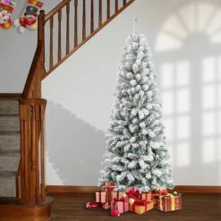 The Acacia tree offers a slimmer profile than trees of similar height making it a great choice for display in corners or in areas where floor space is limited. This tree features flocked branches giving the appearance of freshly fallen snow. This artificial Christmas tree comes in two sections for quick and easy set-up and take down. At National Tree Company, we pride ourselves on craftsmanship and quality products. This holiday season, let our trees and decorations transform your home to create an impeccable holiday display.