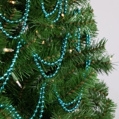 Add some sparkle to your holiday decor with this beaded holiday garland. This garland features metallic teal blue faceted beads that will complement any tree or mantle. Whether you’re looking to add a touch of glamour to your traditional holiday decor or want to create a trendy, modern look, this garland is the perfect choice. Product Features:UnlitBeaded holiday garland with matching stringTeal blue disco ball-shaped faceted beads Durable shatterproof materialFor indoor and outdoor useDimensions: 15′ long x .25″ wideMaterial(s): plastic