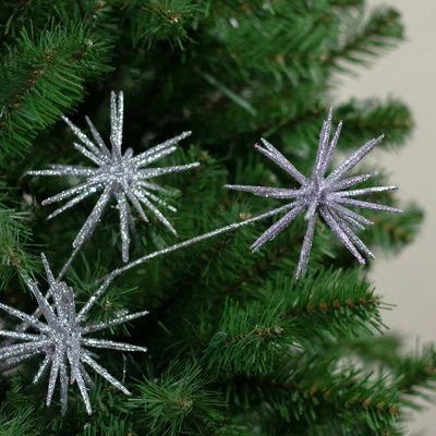 Implement a bedazzled theme to your holiday decor with this festive silver glitter starburst spray. Its sparkling accents will add a touch of shine and is perfect for elegant decor. You can add this spray to any floral arrangement or place in your holiday tree this holiday season!Product Features;Silver starburst artificial holiday sprayFeatures three silver star ballsThe spray is embellished with silver glitterBendable silver glittered stem and branchesRecommended for indoor or covered outdoor useDimensions: 24″H x 7″W x 4″DMaterial(s): plastic/wire/glitter