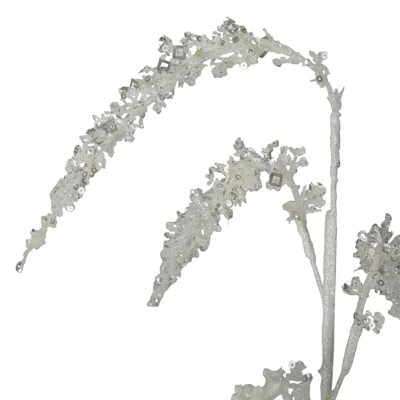 From the Cozy Farmhouse collection, this lovely pick will make a great addition to your home this holiday! A perfect pick to add to your holiday tree as it will reflect your lights beautifully. It is also ideal to match to an already existing holiday decor or create a new display.Product Features:White weeping pick Features different types of white sequins Recommended for indoor use only Stem measures 11 inches longStem is covered with glitter Dimensions: 27” high Material(s): plastic