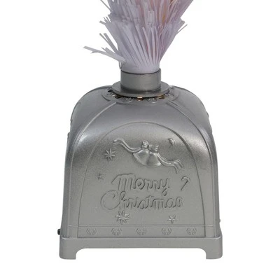 Look at this beautiful fiber-optic white holiday tree, perfect for any holiday decor! The tree features multi-colored lights, a lighted star on top with a silver bottom base that reads “Merry holiday”. You can place this piece on your end table, mantel, or even make this tree your child’s own first holiday tree.Product features: Pre-lit fiber optic tree has a multi-color wheel at baseFiber optic colors include: red, green, amber, pink and clearTree also comes with cool white LED lightsBulb size: concave wide angle2.5″ wide branch tipsIncludes an attached silver tree stand with an on/off switchThe tree stand plugs into the tree, lighting the topper and LED lightsThis stand reads Merry holiday with jingle bells, ribbon, angel, candy cane, stars, and a moonCan be used as a tabletop decorationBranches are bendable to help accommodate your decorating needsAdditional product features:2-piece easy assembly (including stand) UL listed for indoor use only Black adapter included lights up the entire treeAdapter input: 120 volts, 60 hertzAdapter output: 12 volts, 0.12 ampsBlack lead cord is approximately 10′ long Cannot be connected to other lighted itemsDimensions: 3′ high (from the base of the pot to the top of the tree)19″ base diameter (at the widest point)Pot dimensions: 5″ high x 5.5″ wideMaterial(s): PVC/plastic/wire