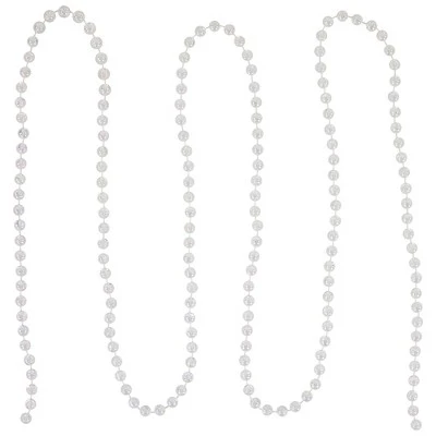 Make your holiday decorations shimmer and shine with this iridescent beaded holiday garland. The clear iridescent beads catch the light beautifully, creating a magical and festive atmosphere in your home. You’ll have plenty to decorate your tree, mantle, staircase, or any other area in your home.Product Features:UnlitClear iridescent round beadsDurable shatterproof materialComes on a spool for easy storage For indoor and outdoor useDimensions: 33′ long x 0.25″ wide Material(s): plastic
