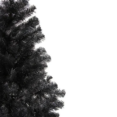 This unique tree is perfect for taking Halloween decorations up a notch or a chic modern approach to your holiday decor. Impress your family and friends with this black Colorado Spruce that is easily put up and taken down with its hinged branch construction. The tree features no lights so that you can decorate it to your specifications. This tree is durable and beautiful enough to use year after year even with the ever-changing trends. Product Features:Unlit250 tips2″ wide tapered tipsFull profile treeHinged branch constructionRecommended for indoor use only3-piece easy assembly (including stand)Comes with a free black plastic tree standDimensions: 4’ high (from the base of the stand to the top of the tree)36” base diameter (at the widest point)Material(s): PVC/metalNote: Branches are compressed for shipment, and need to be fluffed out upon arrival to look like the photo.