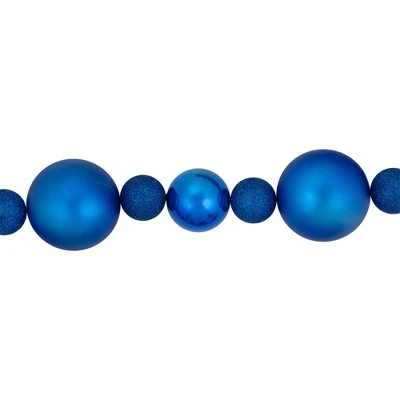 Update your holiday decor with this 3-finish shatterproof ball garland. Shatterproof ornaments combine the beauty real glass with the unbreakable practicality of plastic. Features shiny, glitter and matte ball ornaments. Perfect for mantles, railings or as part of your holiday table centerpiece.Product Features:Shiny, matte, and glittered blue ball ornamentsClear plastic loops on each end for easy hangingRecommended or indoor use onlyDimensions: 72″ long Ball diameters: 4″, 2.75″, 2″Material(s): plastic