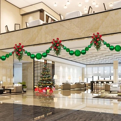 Update your holiday decor this season with this 2-finish shatterproof ball swag. Designed with shiny and matte ball ornaments for added depth. The Large size makes it perfect for bigger spaces. The ready to hang feature makes installation a snap. Shatterproof ornaments combine the beauty and luster of real glass with the unbreakable practicality of plastic.Product Features:Shatterproof ball swagShiny and matte green ball ornamentsComes ready to hang from a clear string on each endRecommended or indoor use onlyDimensions: 6’ long Ornament diameter sizes and quantity:9.75″ (1)7.75″ (2)6″ (2)4.75″ (2)4″ (2)3″ (2)2.75″ (2)Material(s): plastic
