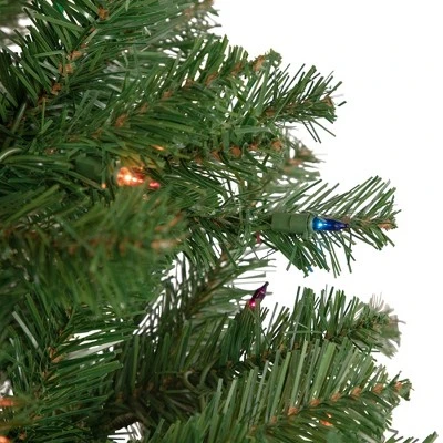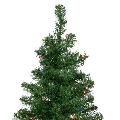 It’s easy to imagine all the wonderful presents you can fit under this stunning Wilson Pine holiday tree. This 6-foot pine tree is designed with a slim frame and comes pre-lit with 200 traditional multi-color mini lights. Easy-to-assemble with hinged branches and the included metal stand, this charming artificial holiday tree is sure to be a welcome addition to your holiday decor. Product Features:Pre-lit with 200 multi-color lightsMulti-color consists of red, green, blue, purple and amber bulbsBulb size: mini560 tipsSlim profile tree2″ wide tips32″ green lead cordSlim profile treeAdditional Product Features:Light sets on tree are UL listed for indoor or outdoor use, however the tree itself is recommended for indoor use only If one bulb burns out, the rest will stay litLights are equipped with Lamp Lock feature, which makes them replaceable, interchangeable and keeps them from falling out4-piece easy assembly (including stand)Comes with a green metal tree standWire gauge: 22120 volts, 60 hertz, .17 amps, 20.4 watts120 volts, 60 hertz, .34 amps, 40.8 watts Dimensions: 6′ high (from the base of the stand to the top of the tree)Distance from floor to the first row of branches: 10″31″ base diameter (at the widest point)Material(s): PVC/metal/glass bulbs/wire/plasticNote: Branches are compressed for shipment, and need to be fluffed out upon arrival to look like the photo.