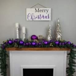 Update your holiday decor this season, with this 3-finish shatterproof ball garland. Designed with shiny, glitter and matte ball ornaments for added depth. Shatterproof ornaments combine the beauty of real glass with the durability of plastic. Perfect for mantles, railings or as part of your holiday table centerpiece.Product Features:Shiny, matte, and glittered purple ball ornamentsClear plastic loops on each end for easy hangingRecommended or indoor use onlyDimensions: 6’ long Ball diameters: 4″, 2.75″, 2″Material(s): plastic
