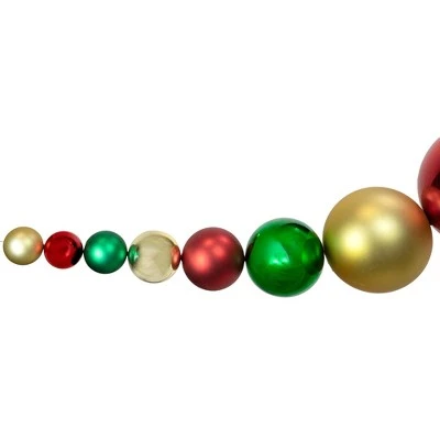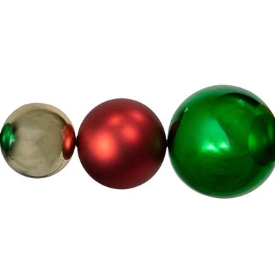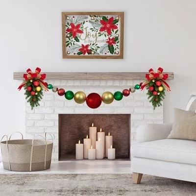 Bring a bold and colorful style to your mantle, railings, and doorways with an oversize 6 foot swag. This swag is available in red, green, and gold for a jolly and cheerful look. Made from shatterproof ornaments, this large swag is perfect for a home with kids or pets, and you can feel safe placing it in a high traffic area. Product Features:Shatterproof ball swagShiny and matte red, gold and green ball ornamentsComes ready to hang from a clear string on each endRecommended or indoor use onlyDimensions: 6’ long Ornament diameter sizes and quantity:9.75″ (1) 7.75″ (2) 6″ (2) 4.75″ (2) 4″ (2) 3″ (2)2.75″ (2)Material(s): plastic