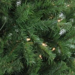 Your home will be the talk of the town this season when you have this lighted artificial holiday tree. This tree with tiny luminaries on it elegantly emphasizes your space. Onlookers will be amazed by the beauty of this holiday decor.Product Features:Pre-lit with 400 clear lightsBulb size: mini1099 tips2″ wide tips36″ lead cordAdditional Product Features:Slim profile treeHinged branch constructionLight sets on tree are UL certified and approved for indoor or outdoor use, however, the tree itself is recommended for indoor use onlyIf one bulb burns out, the rest will stay litLights are equipped with Lamp Lock feature, which makes them replaceable, interchangeable and keeps them from falling outComes with replacement bulbs and spare fuses4-piece easy assembly (including stand)Comes with a FREE black metal tree standWire gauge: 22120 volts, 60 hertz, .34 amps, 40.8 watts Dimensions: 7.5′ high (from the base of the stand to the top of the tree)Distance from floor to the first row of branches: 12″32″ base diameter (at the widest point)Material(s): PVC/metal/glass bulbs/wireNote: Branches are compressed for shipment, and need to be fluffed out upon arrival to look like the photo.