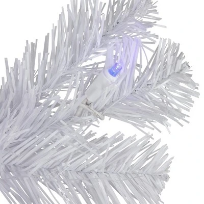 Whether you’re looking to impress your guests with a grand display or simply want to create a cozy ambiance in your home, this white pine tree is the perfect solution. Its lifelike branches and warm, inviting lights, this tree is the perfect way to add a touch of elegance and sophistication to your holiday decor. And with its easy setup and storage, you can enjoy the beauty of this tree year after year. With this tree you can make your space grand and elegant this holiday season.Product Features:Pre-lit with 350 LED multi-color lightsMulti-color consists of red, green, blue, pink, purple and clear bulbs Bulb size: mini679 tips 2″ wide branch tipsPencil profile treeHinged branch construction4-piece easy assembly – including standAdditional Product Features:LED lights use 90% less energy Durable non-glass replaceable bulbsCool to the touch Light sets on tree are UL certified and approved for indoor or outdoor use, however the tree itself is recommended for indoor use only If one bulb burns out, the rest will stay lit Comes with a replacement bulbs and spare fusesComes with a free white metal standWire gauge: 22Dimensions: 7.5′ high (from the base of stand to the top of the tree)36″ base diameter (at the widest point)Material(s): PVC/metal/plastic bulbs/wireNote: Branches are compressed for shipment, and need to be fluffed out upon arrival to look like the photo.
