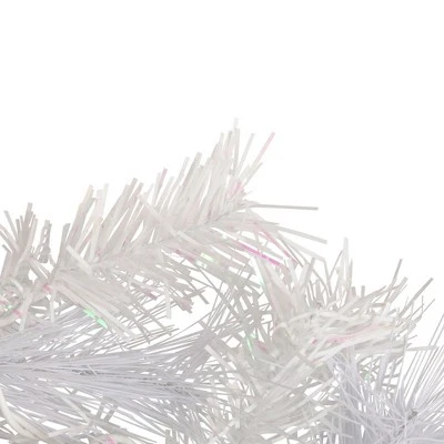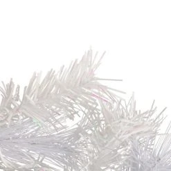Transform your space into a winter wonderland with this beautiful artificial Vermont White Pine garland. Crafted from shimmering iridescent needles mixed with long shiny white pine needles that create depth and fullness. The dazzling clear incandescent mini lights reflect off the iridescent needles adding some extra sparkle and pizazz to the wreath. Product features:Pre-lit with 50 clear lightsBulb size: miniBulb type: incandescent220 tips2″ – 3.5″ wide tips24″ lead cord Additional product features:Bendable wires center allows for you to shape the garland any way you desire White metal hooks on each end for easy hanging If one bulb burns out the rest will stay litLights are equipped with Lamp Lock, which makes them replaceable, interchangeable and keeps them from falling outUL certified and approved for indoor or covered outdoor useContains end to end connectors which allows you to connect multiple garlands together (not to exceed 210 watts)Wire gauge: 22120 volts, 60 hertz, .17 amps, 20.4 wattsDimensions: 9′ long x 10″ wideMaterial(s): PVC/metal/glass bulbs/wireNote: Branches are compressed for shipment, and need to be fluffed out upon arrival to look like the photo.