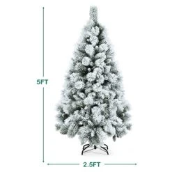 Costway 5ft/6ft/7ft Snow Flocked Hinged Artificial Slim Christmas Tree with Pine Needles