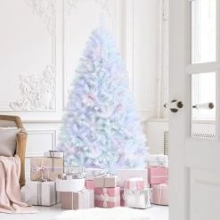 Costway 7ft White Iridescent Tinsel Artificial Christmas Tree with 1156 Branch Tips