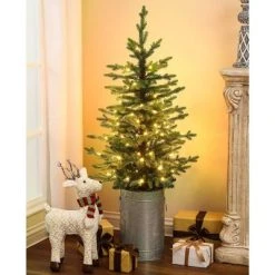 LuxenHome 4ft Pre-Lit LED Artificial Fir Christmas Tree with Silver Metal Pot