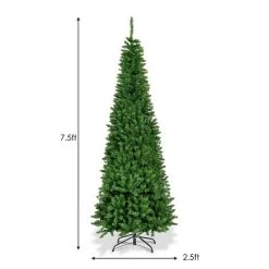 Tangkula 7.5ft Pencil Christmas Tree Pre-Lit Hinged Artificial Decoration w/ 350 Warm White Lights