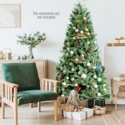 Tangkula 7.5’Artificial Pencil Christmas Tree Snow Flocked Tree w/ Pine Cones and Metal stand
