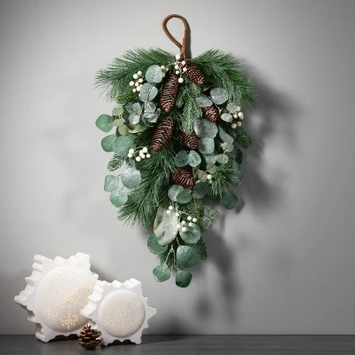 Bring indoors, the delightful charm of outdoor greenery, with the simple addition of this cozy 25″ swag. Ashen-colored foliage and dusty eucalyptus leaves are paired with pinecones and snowy-white berries, to create a warm and welcoming look. Over the last 55 years, Sullivans has become an industry leader in home decorations. Our brand is rooted in tradition while incorporating modernized trends to keep your home looking up to date with timeless style. Here at Sullivans, we pride ourselves on creating product designs focused on quality and value, ensuring that our customers have access to beautiful products at reasonable price points.