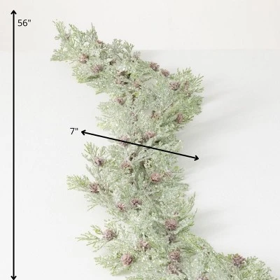 Jack Frost has arrived with this beautiful frosted garland. With soft green cedar accented with pinecones, this exclusive garland is the perfect final touch to any holiday decor. Over the last 55 years, Sullivans has become an industry leader in home decorations. Our brand is rooted in tradition while incorporating modernized trends to keep your home looking up to date with timeless style. Here at Sullivans, we pride ourselves on creating product designs focused on quality and value, ensuring that our customers have access to beautiful products at reasonable price points.