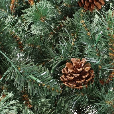Deck the halls this holiday season with this lifelike pre-lit artificial Christmas garland. Decorated with lifelike pinecones, this decorative green garland is sure to add rustic beauty and holiday charm to the living room, kitchen, porch, or deck. This realistic fir garland is a great accent for any holiday or winter display. Keep the garland up all winter long for a natural, festive touch anywhere. With 180 realistic PVC and polyethylene branch tips, this traditional Christmas decoration is designed for indoor use year after year. Let the 50 warm white LED lights illuminate your home with a soft twinkle and cheer this holiday season. The lights are powered by 3 AA batteries (batteries not included) and can be automatically controlled with the timer on the battery box. Tuck the battery box into the full branch tips to conceal it from sight during display.
