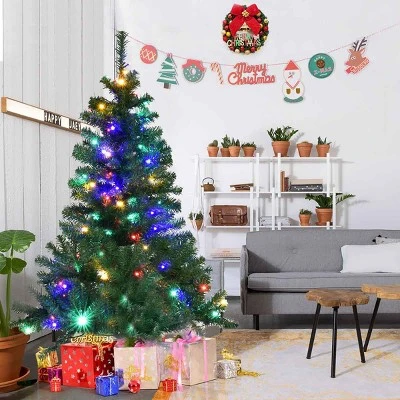 - Vivid Appearance with Colorful LED Lights – DREAMADE 5ft pre-lit artificial Christmas tree is equipped with 150 UL-certified LED lights, which can be switched freely between four-color lights and warm white lights. You can use the controller included to change in 11 kinds of light sequences. With ultra-realistic 600 PVC branches tips, it will bring you a full appearance after fluffing while there is also ample space to hang different types of ornaments in your preferable way.