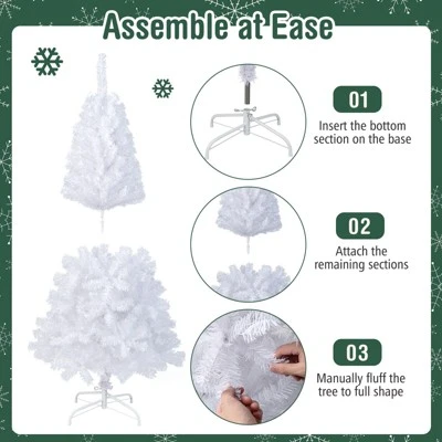This is the perfect White Christmas tree for your holiday decoration both indoor and outdoor. We carefully selected high classic PVC as material of the blades to make the tree look more real and more full. Its metal stand with four-leg design is solid, sturdy and durable that can absolutely provide strong support for the Christmas tree and ensure stability. Besides, it helps the tree standing tall. To finish the assembly of this tree requires only few steps, after putting sections of the tree and metal stand together, all you need to do is straighten out the branches, then your home will get the best atmosphere of festival. Excellent in quality, reasonable in price, it is the best pick for you and your families!