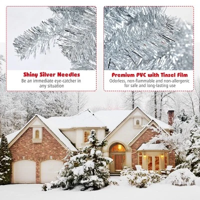 - 【Premium PVC with Tinsel Film】 Made of environment-friendly PVC with tinsel film, this Christmas tree are harmless to human body for safe use. With exquisite craftsmanship, it is odorless, non-flammable and not deformed easily to provide you with long-term service.