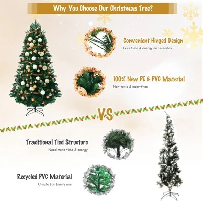 - 【100% New PE & PVC Foliage】 Instead of inferior recycled material, this pre-lit Xmas tree is made of 100% new PE and PVC, which can ensure high safety and long-term service life. Also, the fadeless leaves with strong adhesion are hard to fall, giving home a permanent natural beauty.