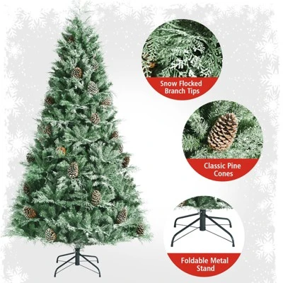 - Lifelike Frosty Christmas Tree: From its frosty glitter branches to its snow powdered pine cones, this Christmas tree perfectly captures the charm of Christmas. With 1651 individually crafted branch tips, this full bodied tree will be an ideal decoration during the holiday.