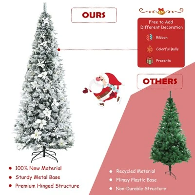 - Beautiful Snow Flocked Tips & Rich Ornaments: The 8FT tree is not only delicately decorated with thick flocking snow but also with 444/372/300/228 frosted white berries and elegant white poinsettia flowers, which create a unique wintry feel.
