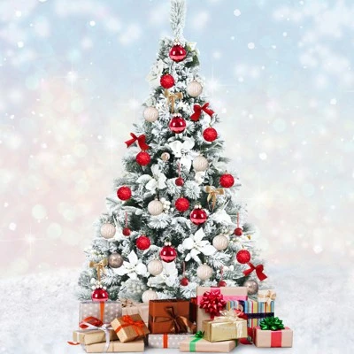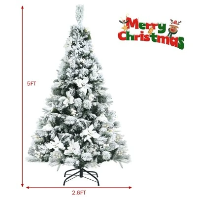 This eye-catching Christmas tree features 405 branch tips, giving the tree a full and flourishing appearance, which is as charming as the real tree. With 228 pure white berries and many big white flowers, the snow-flocked tree is striking and beautiful when you first see it. To ensure safety and long-time use, the Christmas tree is delicately crafted with fire-resistant and premium PVC & PE needles. What’s more, supported by a firm metal stand, the tree can accompany you and your family for many Christmases. Bring happiness and cheers to you and your family is our goal!
