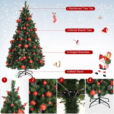 - Abundant Classic Christmas Ornaments: This Christmas tree comes with numerous classic Christmas elements, including 38 red berries, 18 red apples and 36 real pine cones. In addition, there are 120 balls of three types, including glittery, matte and bright balls. All these ornaments are assembly required so you can enjoy endless fun of DIY.