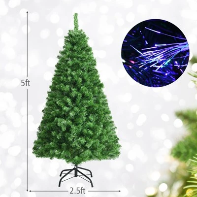 - Pre-Lit Colorful Fiber Optic Lights: Our Christmas tree is pre-installed with dazzling fiber optic on each branch. These fiber optic tubes are gleam throughout the tree and present different colors(red, blue, green, purple, etc) that changes automatically for a joyful holiday atmosphere.
