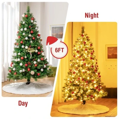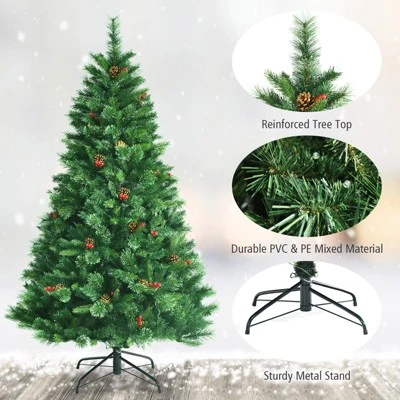 Tangkula Pre-Lit Christmas Spruce Tree Hinged Artificial Tree, Party Decoration w/ Tips, Lights, Pine Cones